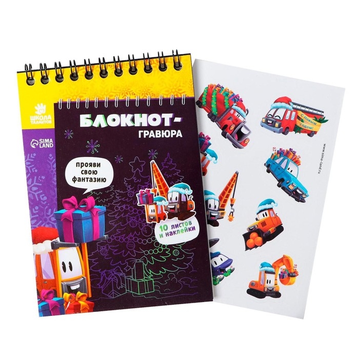Блокнот - гравюра на новый год «Подарки», 10 листов, лист наклеек