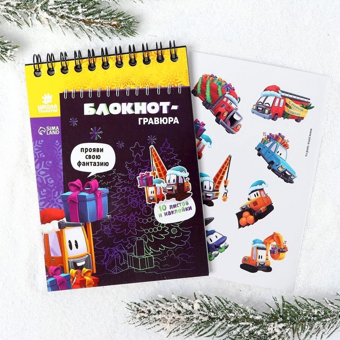 Блокнот-гравюра из 10 листов - это безграничное поле для фантазии! Создавайте узоры, рисунки, надписи! Рисуйте удивительные новогодние открытки, украшайте их наклейками из набора и делитесь своими шедеврами с друзьями и близкими.