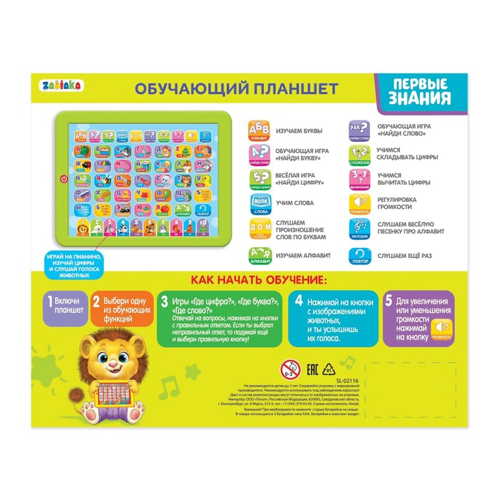 Обучающий планшет «Первые знания»: изучаем алфавит, слова, цифры, сложение, вычитание