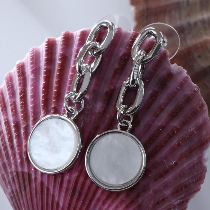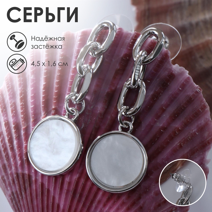 Серьги с перламутром «Волшебство» кружок, цвет белый в серебре