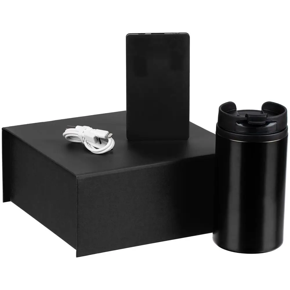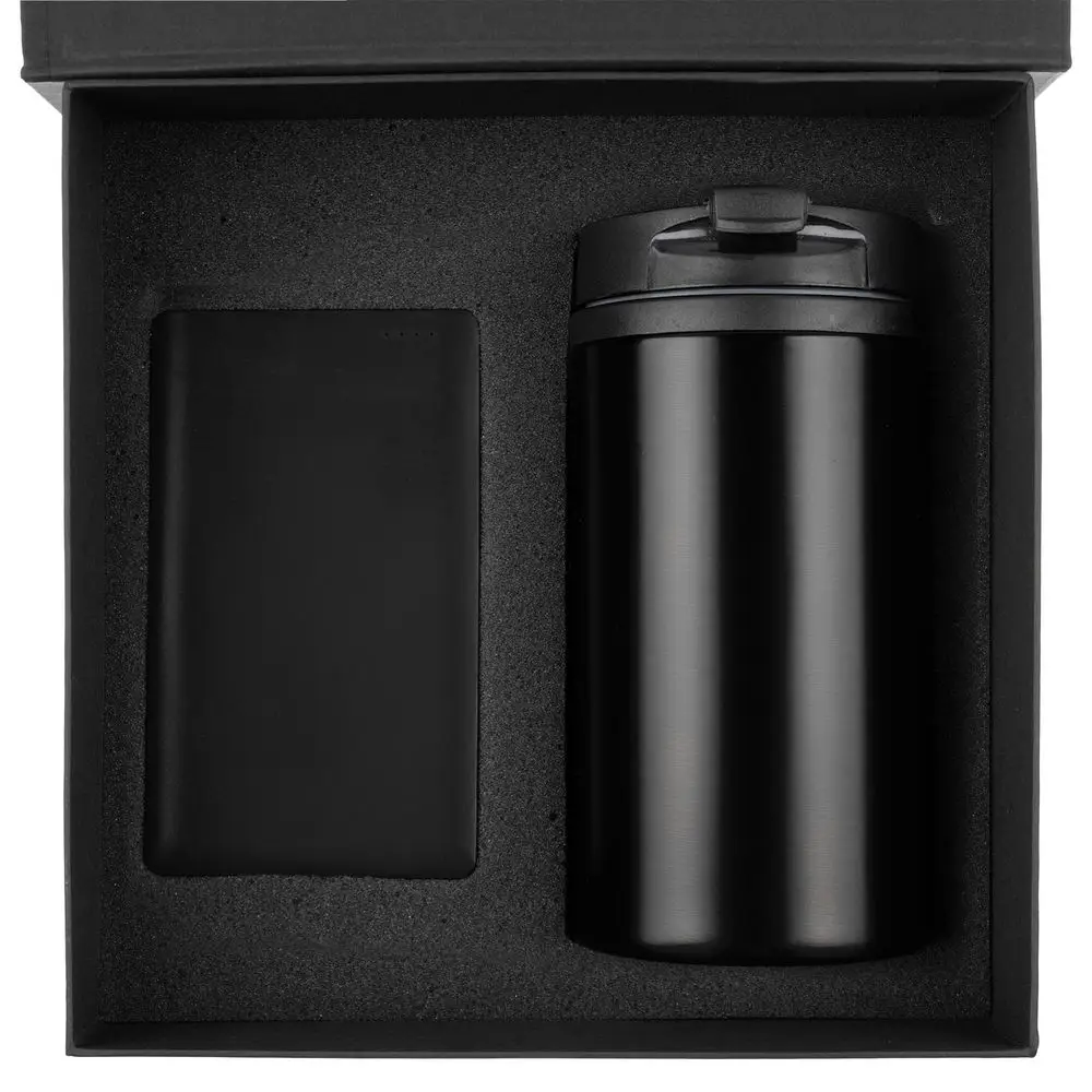 Набор Easy Trick — незаменимый спутник в дороге и офисе и быстрый способ восполнить заряд энергии. Плоский акуумулятор легко поместится даже в карман, а компактная термокружка — в любую кофемашину.