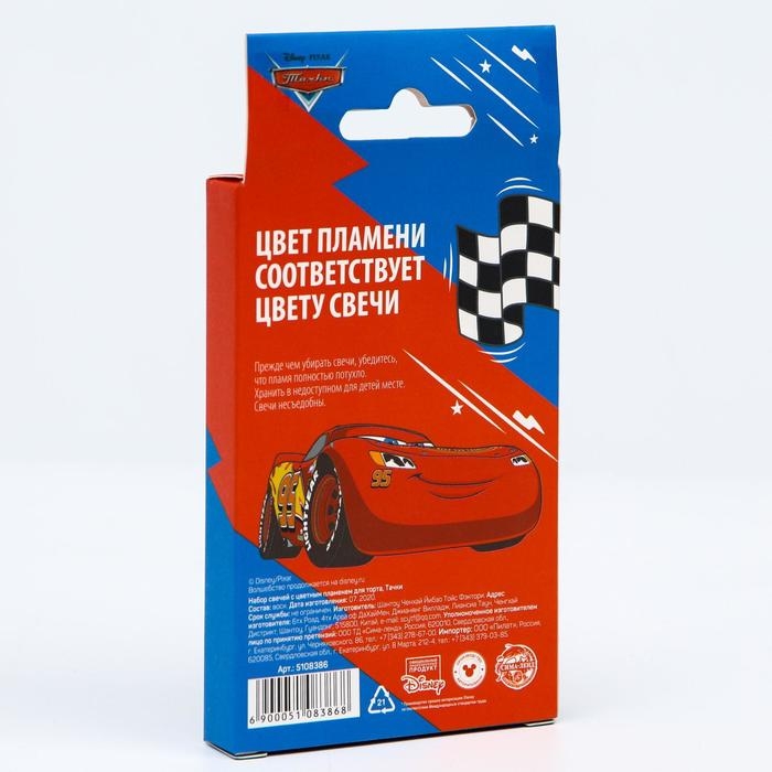 Набор свечей в торт 6 штук, с цветным пламенем, Тачки