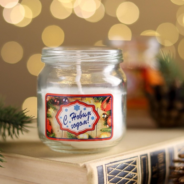 Свеча интерьерная "Счастливого нового года", аромат корица, 7,5 х 8,6 см