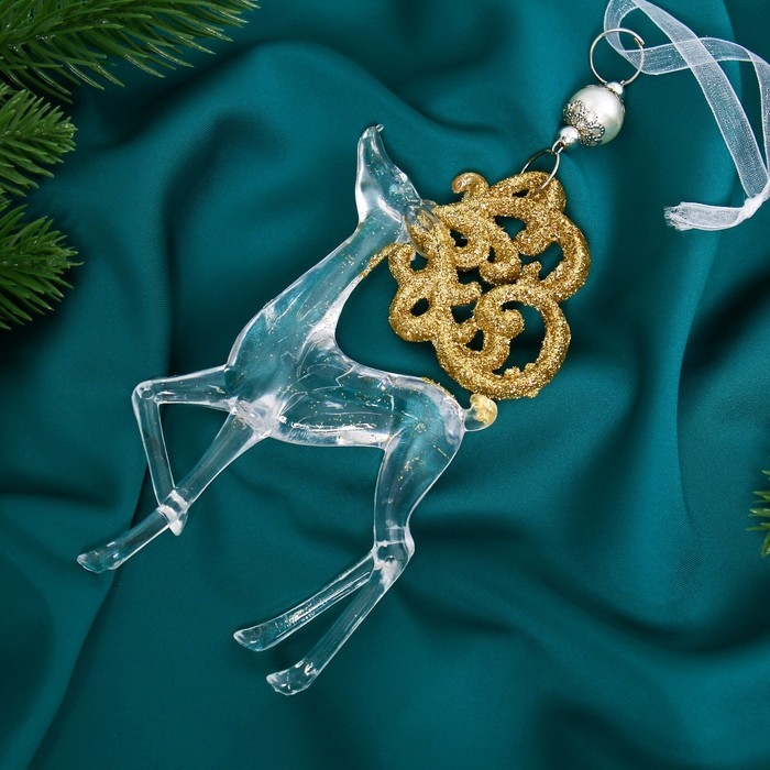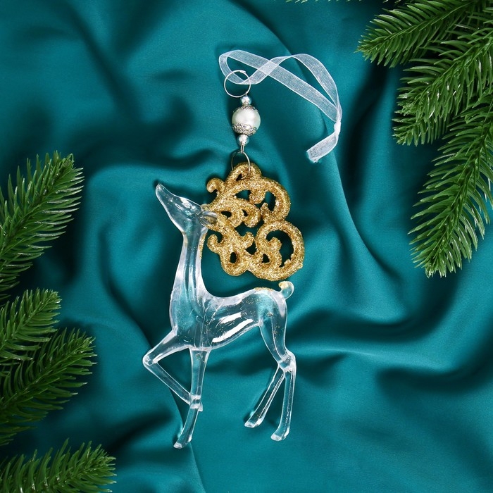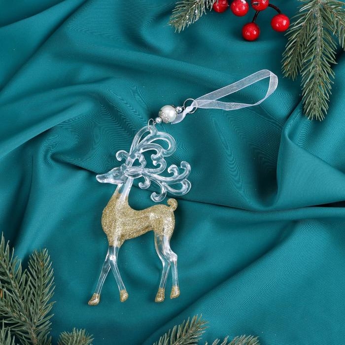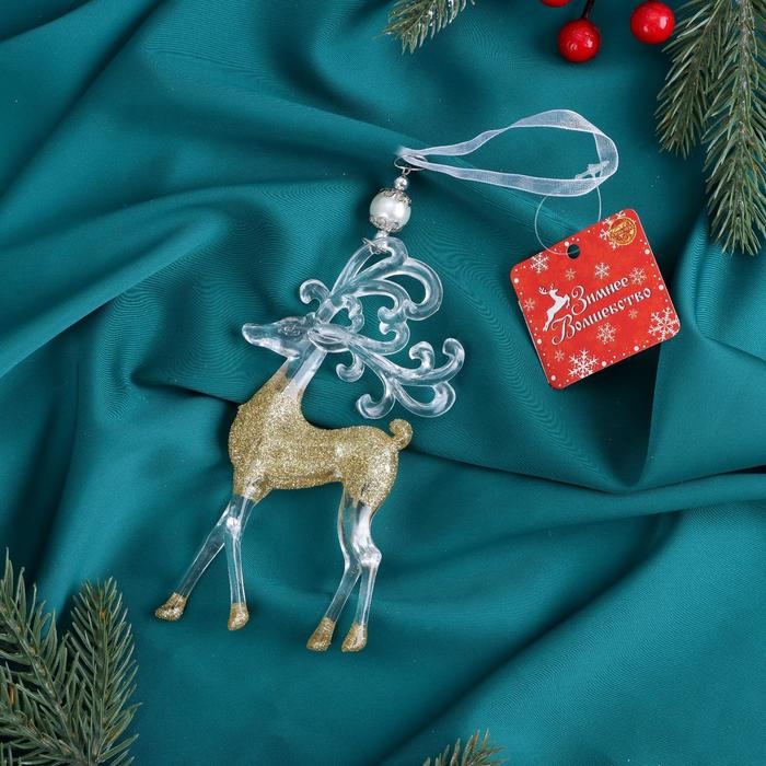 Украшение ёлочное "Олень с узорными рогами блеск" 9х16 см, микс, прозрачно-золотой