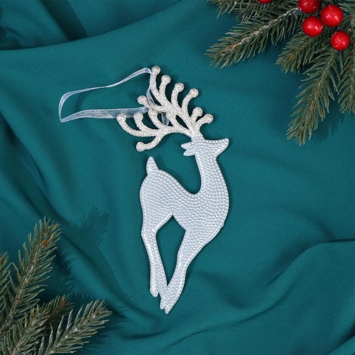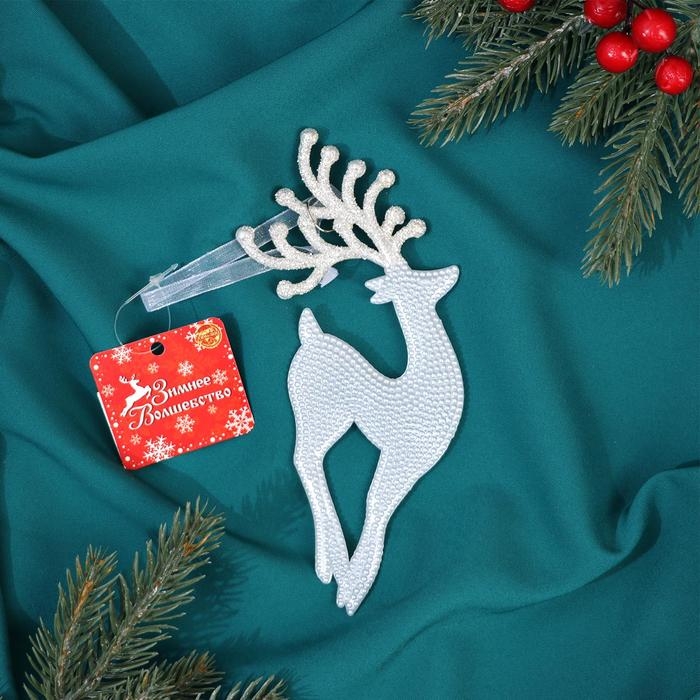 Украшение ёлочное "Олень изящный рога блеск" 8х18 см, белый