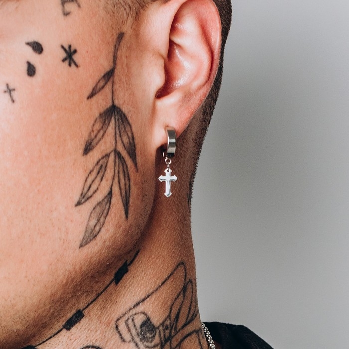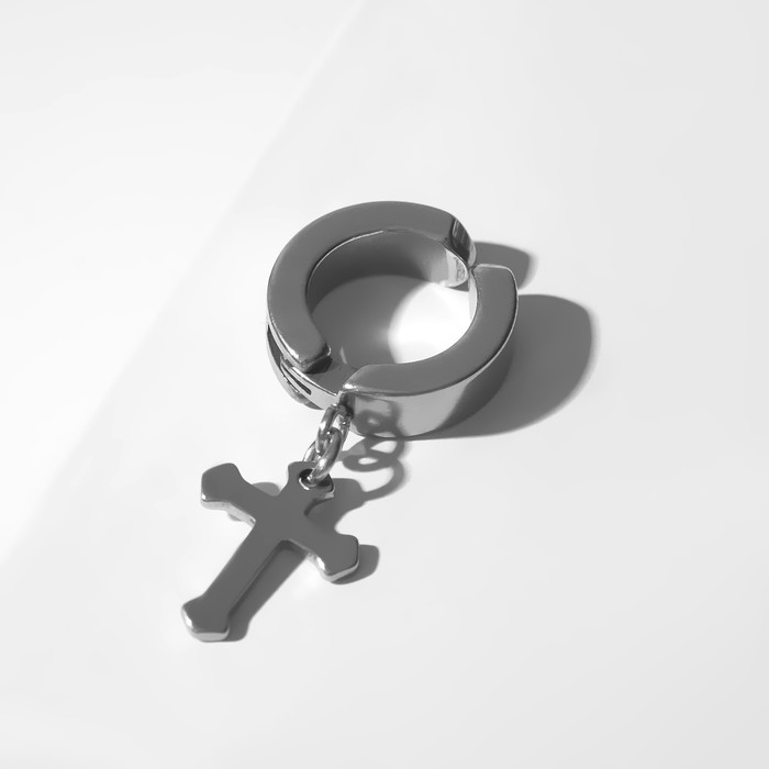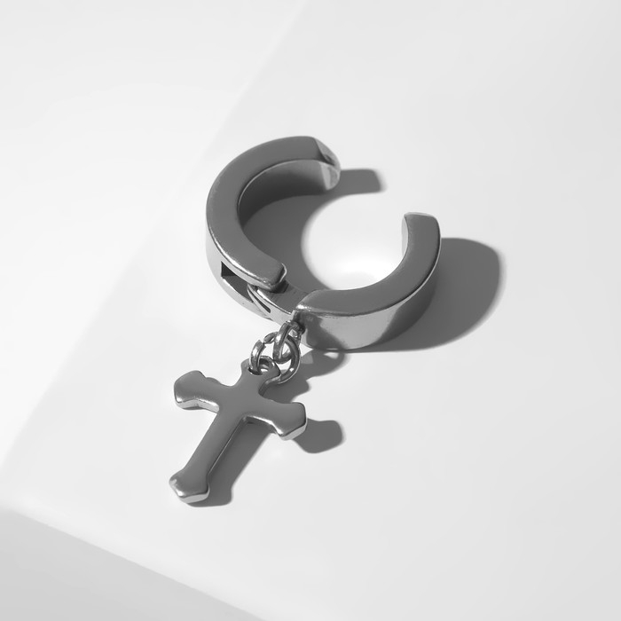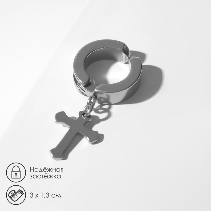 Моно-серьга «Крестик» мини, цвет серебро