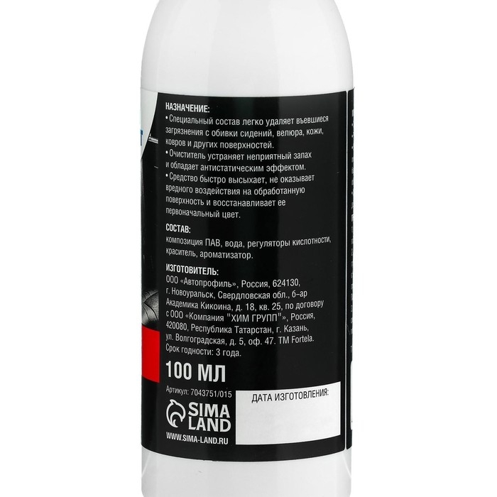 - Специальный состав легко удаляет въевшиеся загрязнения с обивки сидений, велюра, кожи, ковров и других поверхностей.