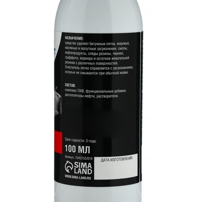 Средство удаляет битумные пятна, жировые, масляные и мазутные загрязнения, смолы, нефтепродукты, следы резины, чернил, граффити, маркера и остатков жевательной резинки с различных поверхностей.