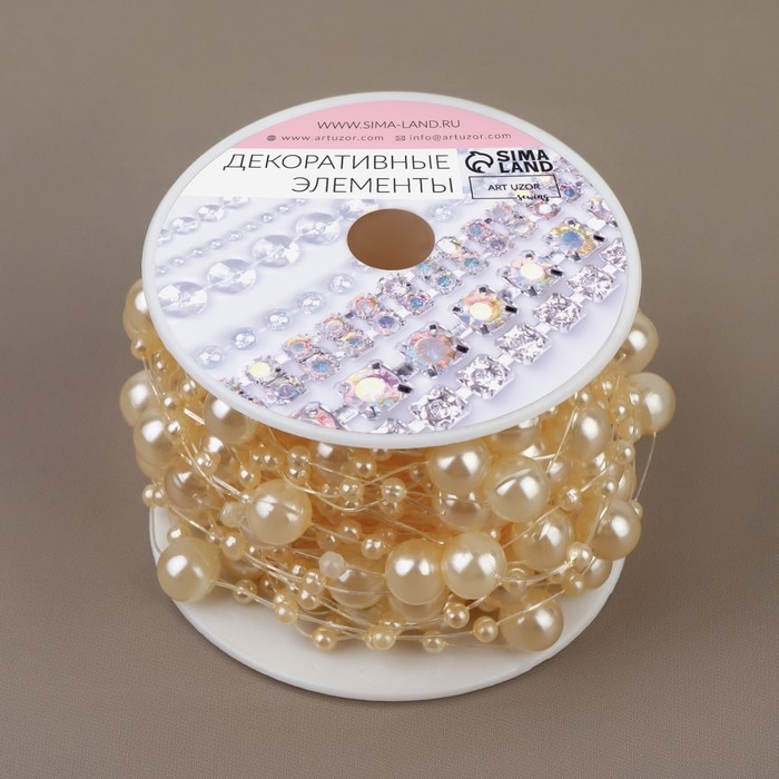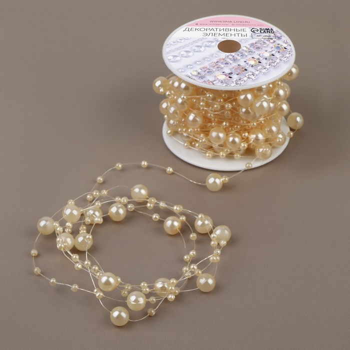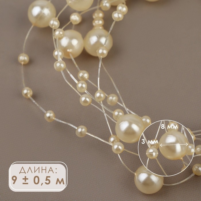 Жемчуг на леске, 3/8 мм, 9 ± 0,5 м, цвет золотой