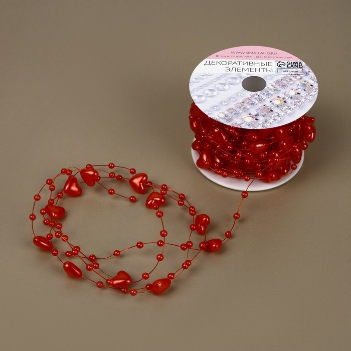 Бусы на леске, «Сердца», 3/9 мм, 9 ± 0,5 м, цвет красный