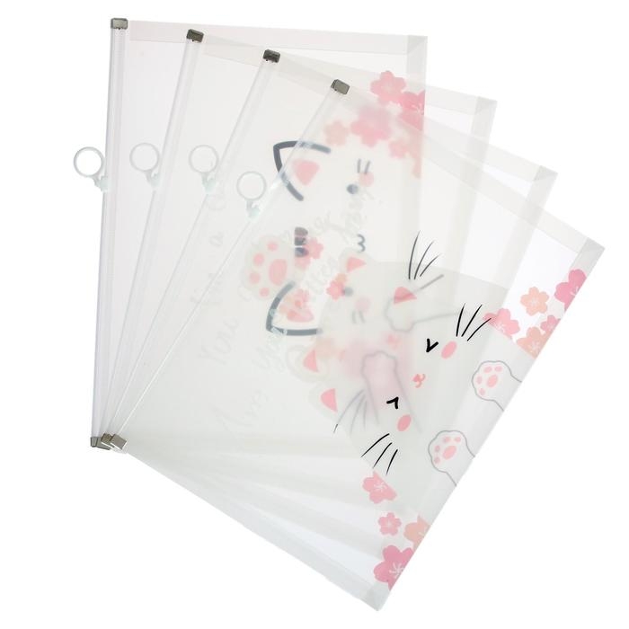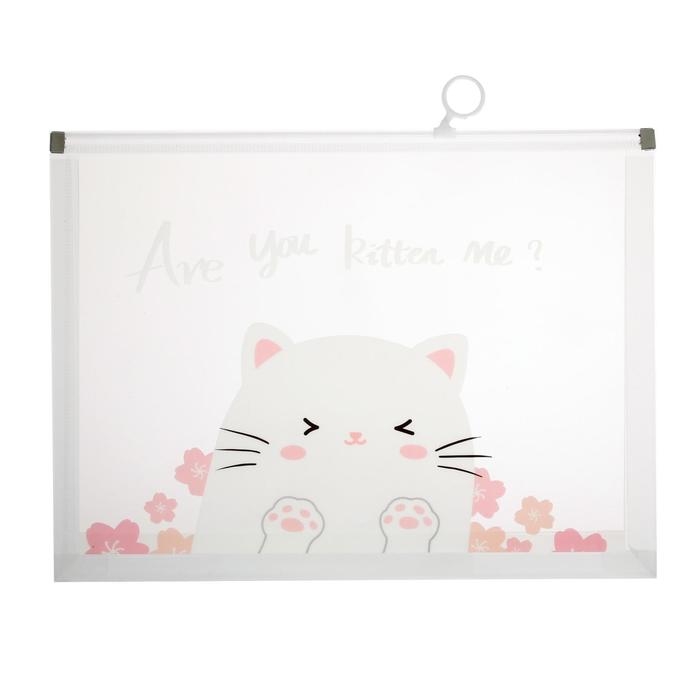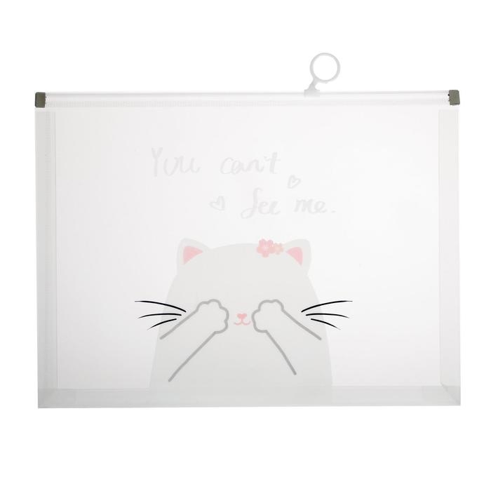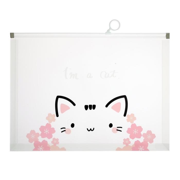 Папка-конверт на ZIP-молнии Calligrata "Кошки" А4, 180 мкм, прозрачная, МИКС