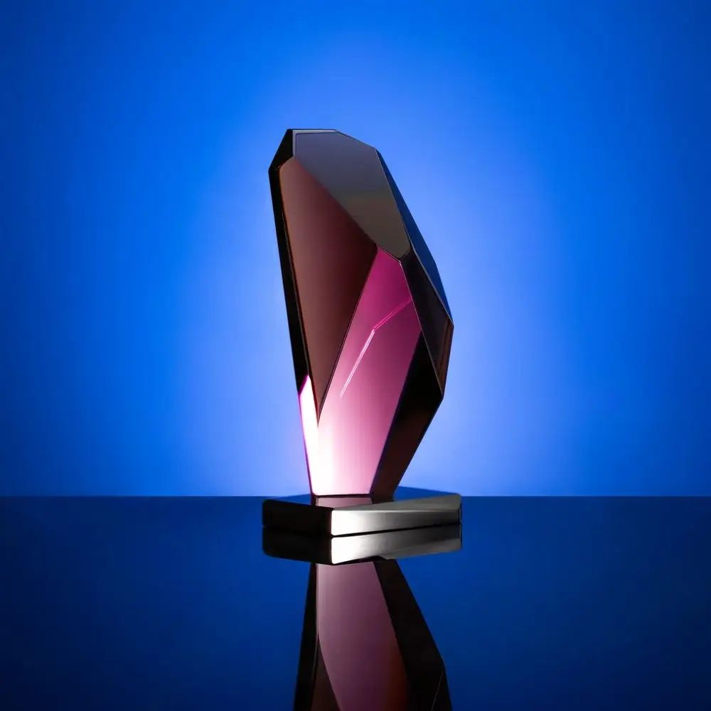 Эта стела-кристалл с легкостью поместится на ладони и подарит бурю положительных эмоций при награждении! Оригинальные стелы Cristallino напоминают эстетичные обломки настоящих кристаллов или минеральных камней, притягательных в своей уникальности и естественной простоте. Благодаря материалу — премиальному стеклу К9 — и особой технике окрашивания рождается оптический эффект: свет преломляется сквозь цветные грани, делая всю награду живой и яркой.