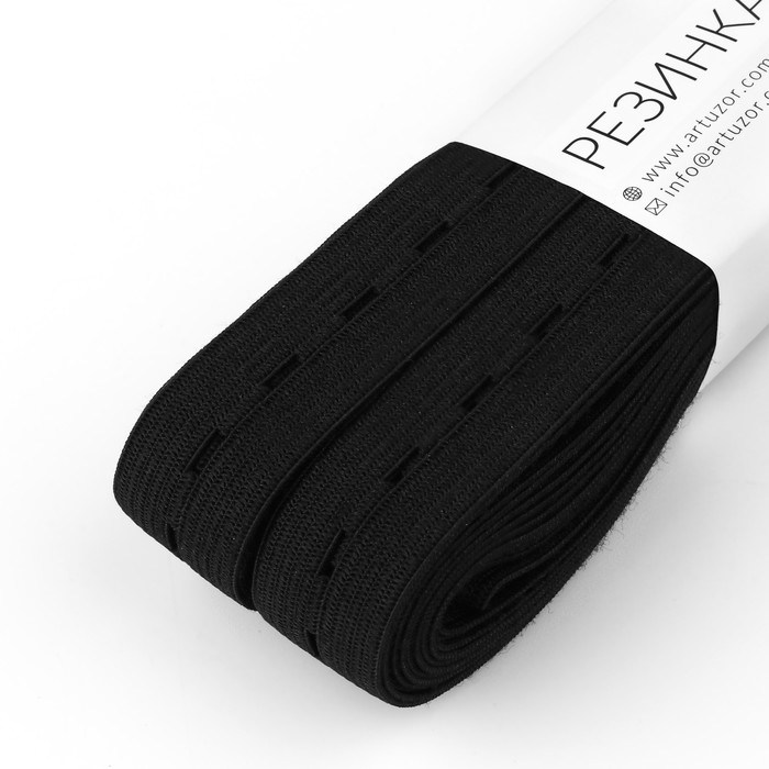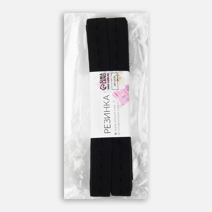 Резинка вязаная, перфорированная, 20 мм, 10 ± 0,5 м, цвет чёрный