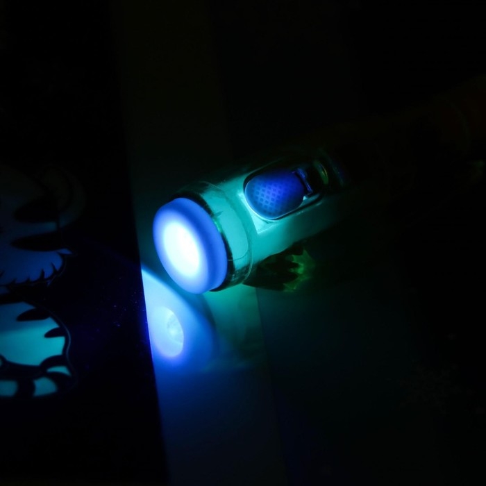 У волшебной ручки есть ещё одна функция — невидимые чернила. Снимите колпачок и напишите что-нибудь на листе бумаги, а затем посветите фонариком, и текст проявится. Можно оставлять невидимые послания для друзей, как настоящий шпион!