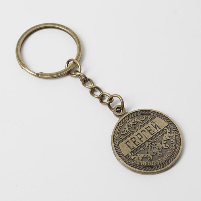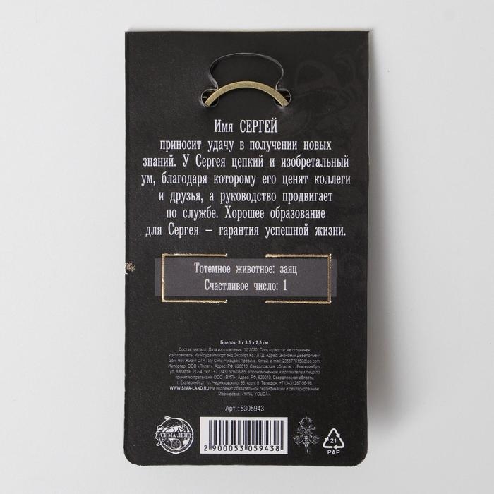 Брелок для ключей , металлический, талисман «Сергей» латунь, 3 х 3,5 х 2,5 см