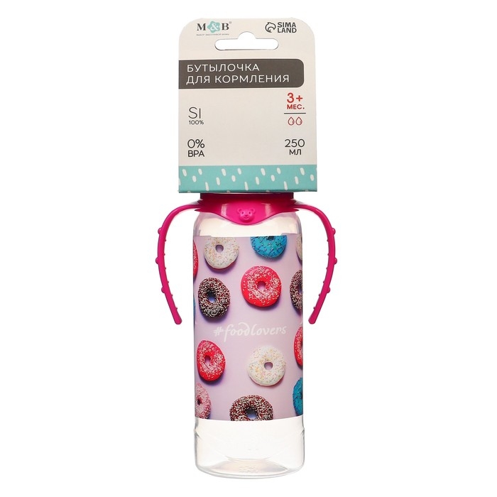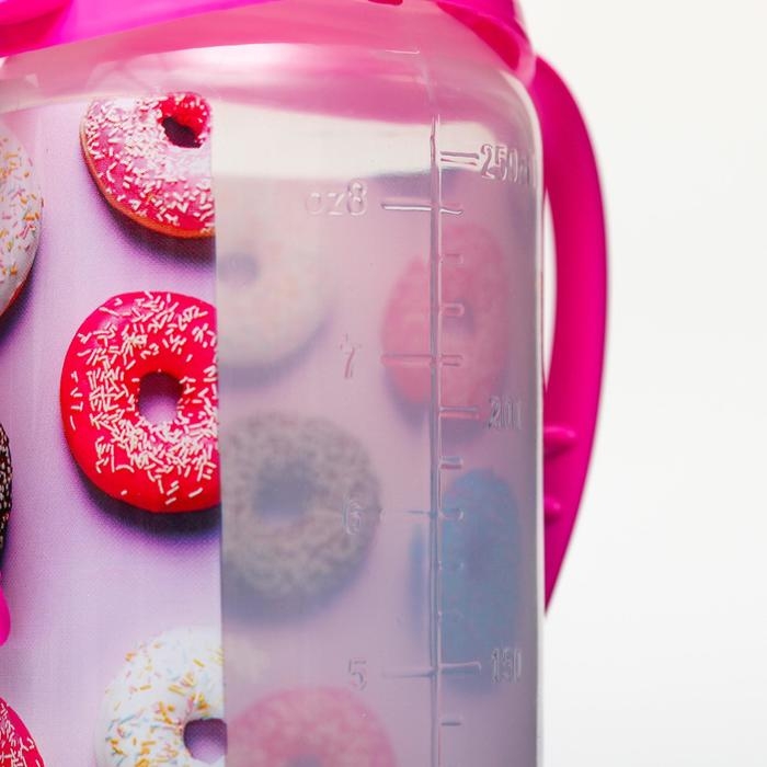 Бутылочка для кормления «Пончики», классическое горло, 250 мл., от 3 мес., цилиндр, с ручками