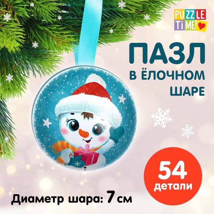 Пазл в ёлочном шаре «Весёлый снеговичок», 54 элемента