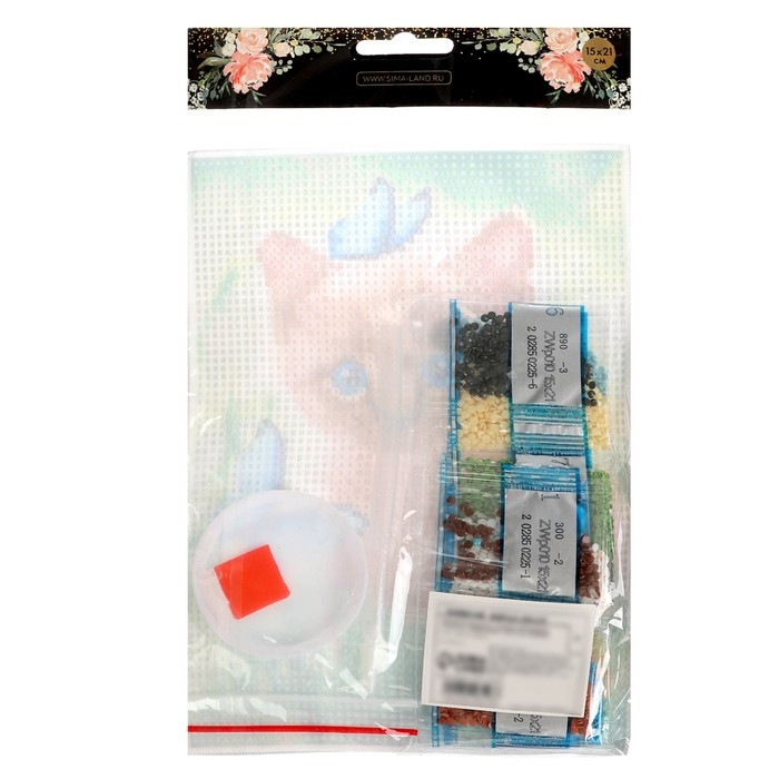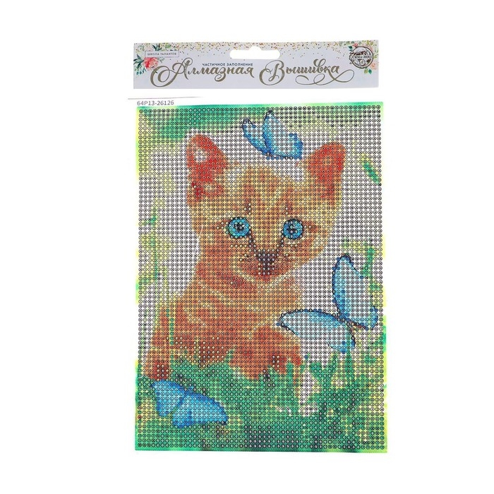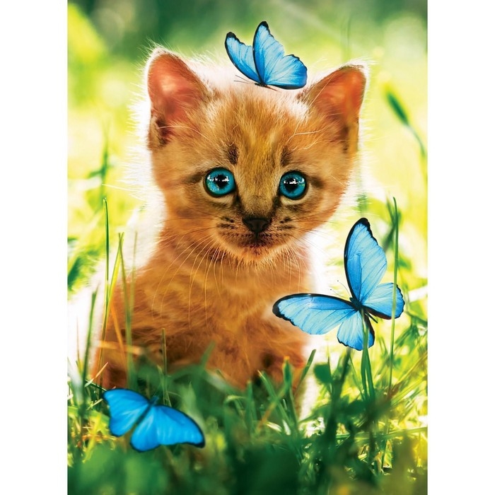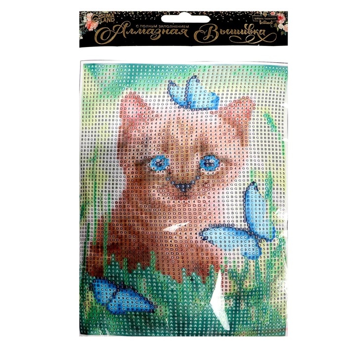 Алмазная мозаика с полным заполнением на холсте «Котёнок с бабочками», 15 х 21 см