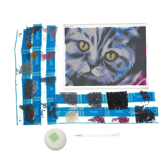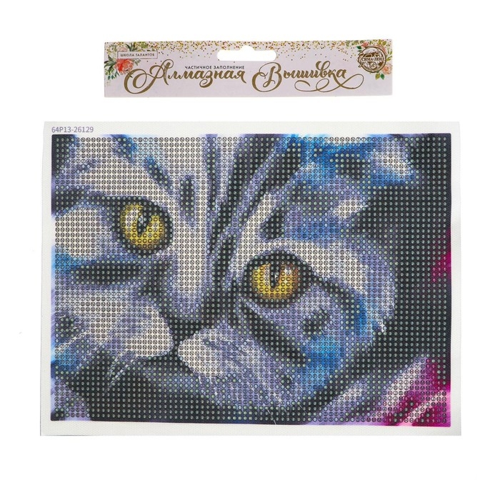 Алмазная мозаика с полным заполнением на холсте «Кот», 15 х 21 см