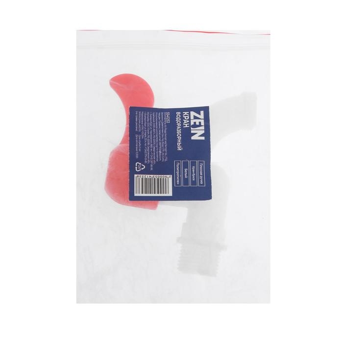 Кран водоразборный ZEIN, 1/2", плоская красная ручка, PP, кран-букса, белый