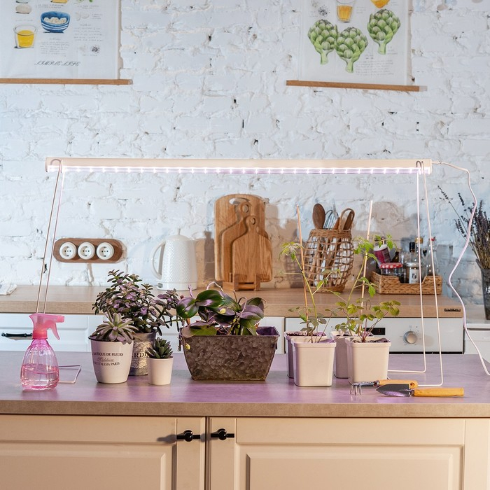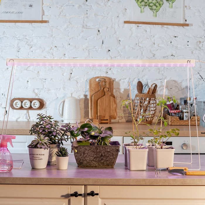 Линейные светильники подойдут для дополнительного освещения контейнеров и длинных ящиков. Равномерное распределение света, простота использования и освещение большого пространства делают их незаменимыми на стеллажах, подоконниках и в теплицах.