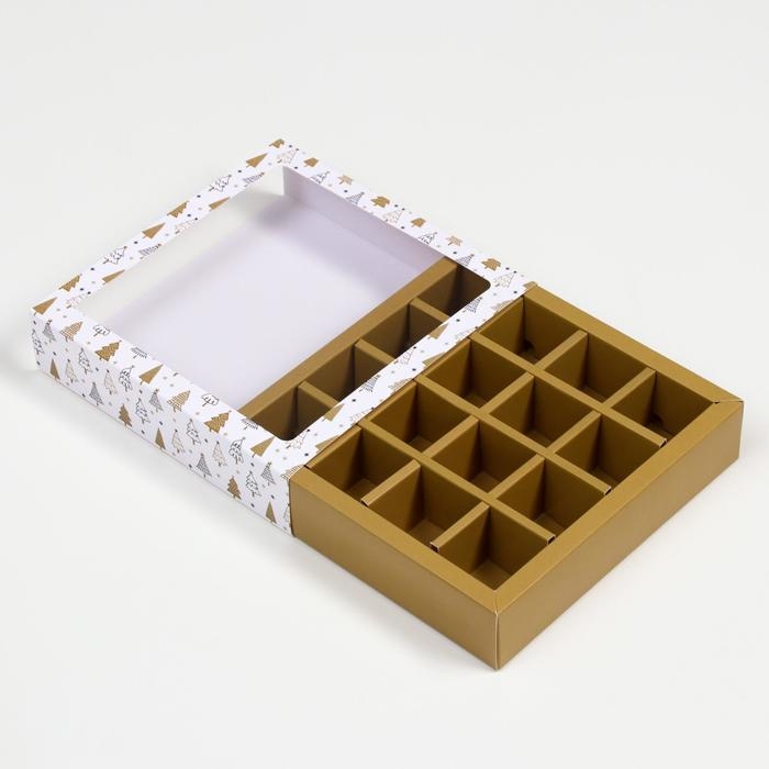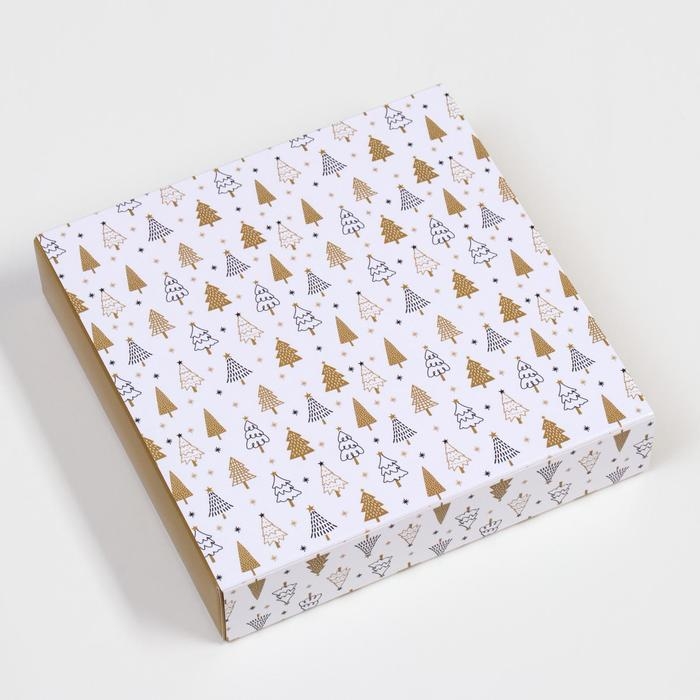 Новый год. Коробка для конфет 16 шт "Новогодние ёлки" подарочная новогодняя упаковка, 17,7 х 17,7 х 3.8 см.