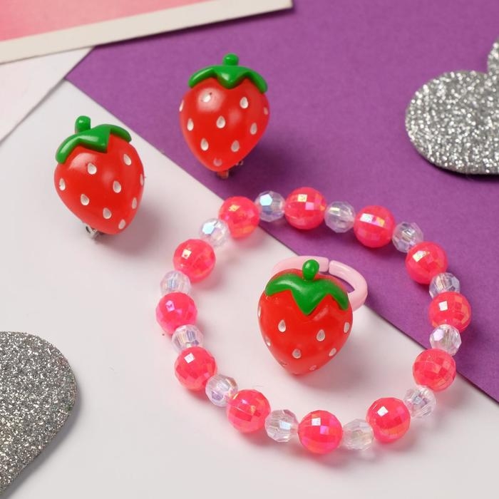 Набор детский «Выбражулька» 3 предмета: клипсы, браслет, кольцо, клубнички, цветной