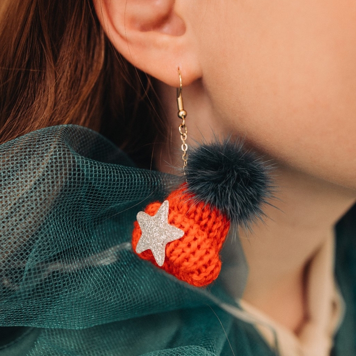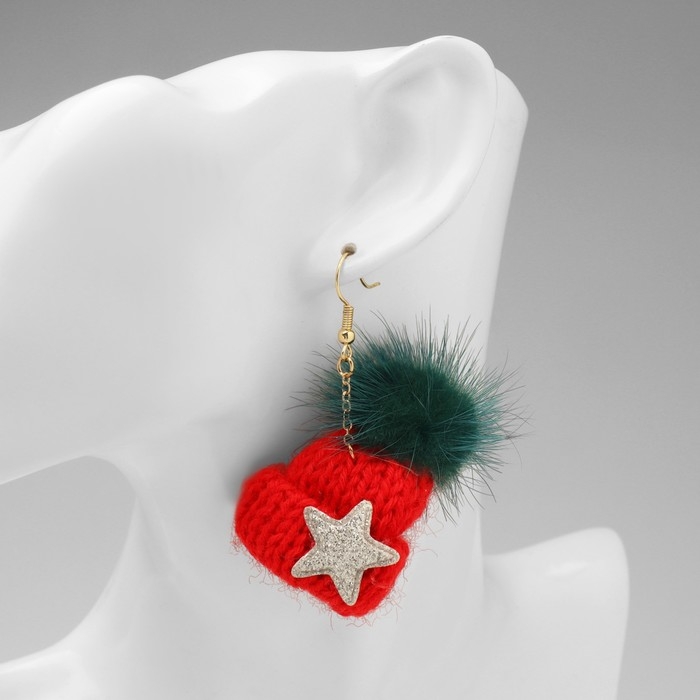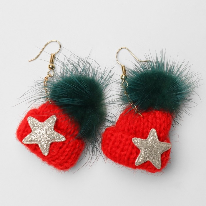 Новый год! Серьги «Шапочки» мягкие, цвет красно-зелёный