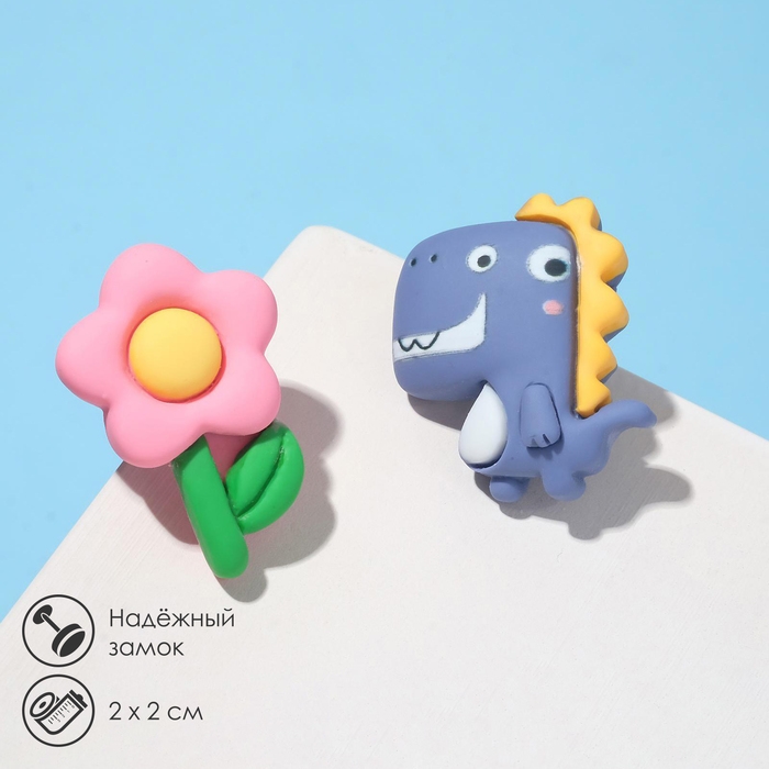 Серьги пластик «Вкусности» динозаврик и цветочек, цвет сине-розовый