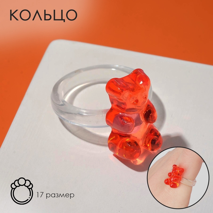 Кольцо «Мармеладный мишка», цвет красный, размер 17