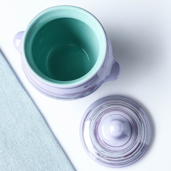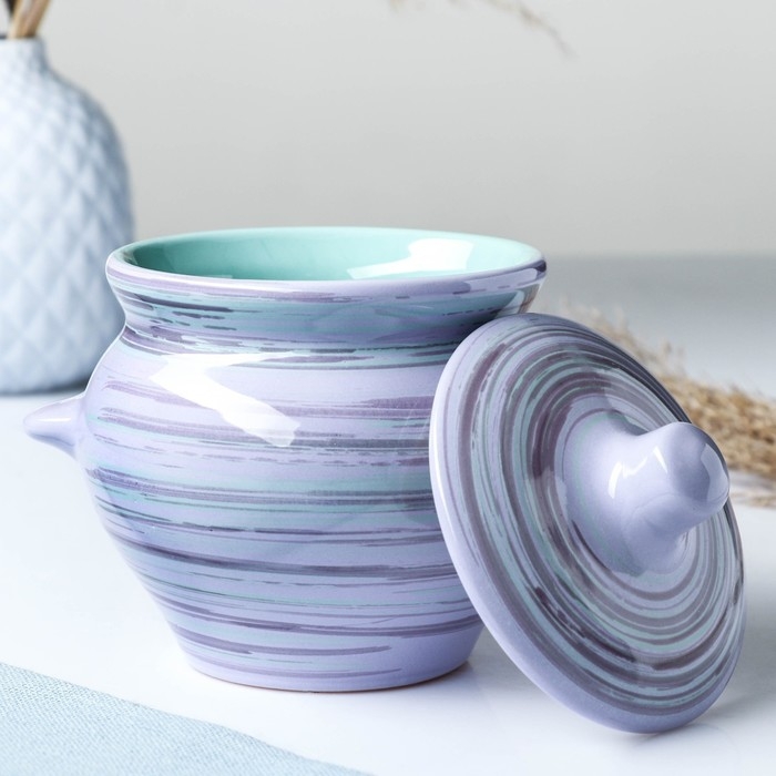 Горшок керамический для запекания №5 с ручками, 0,5л / 10х10,5см, лаванда