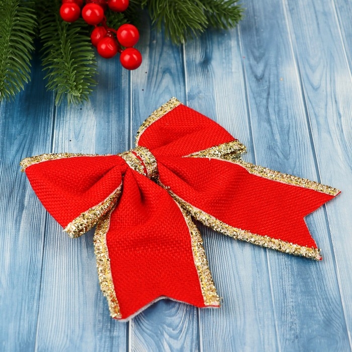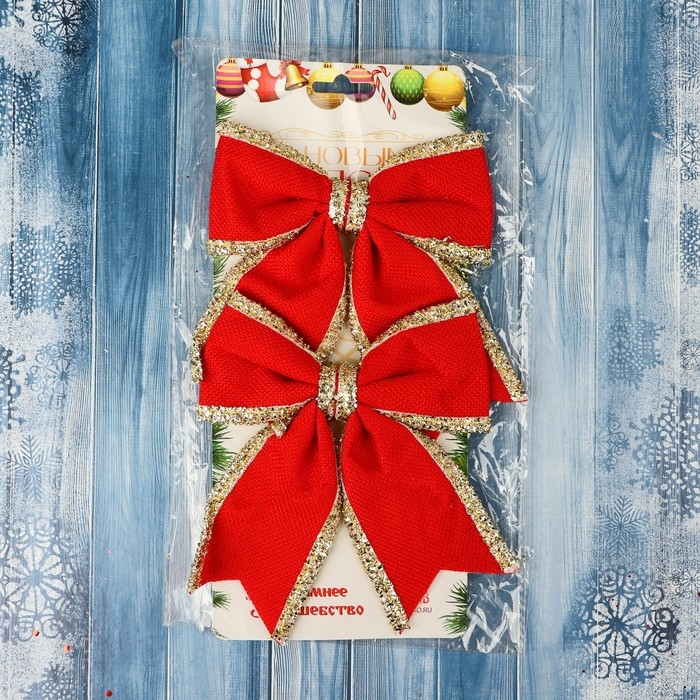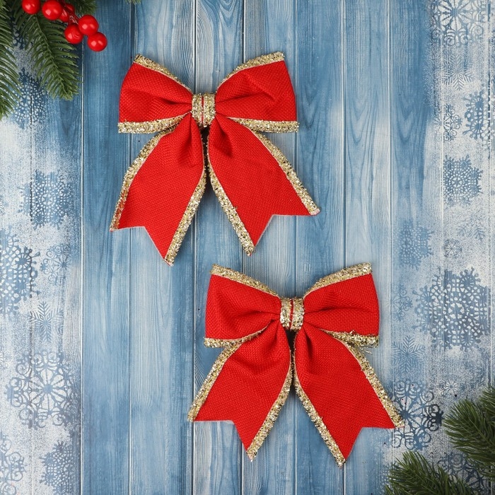Украшение ёлочное "Бант классика края блеск" (набор 2 шт) 14х14 см, красный