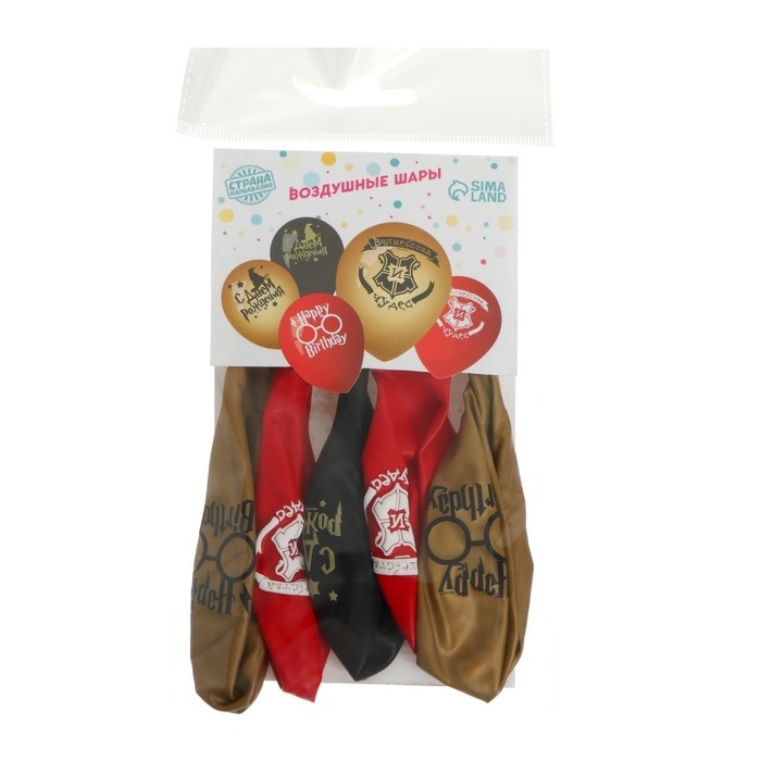 Воздушный шар латексный 12" «С днем рождения», шляпа, 5 шт.