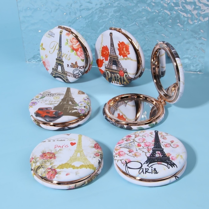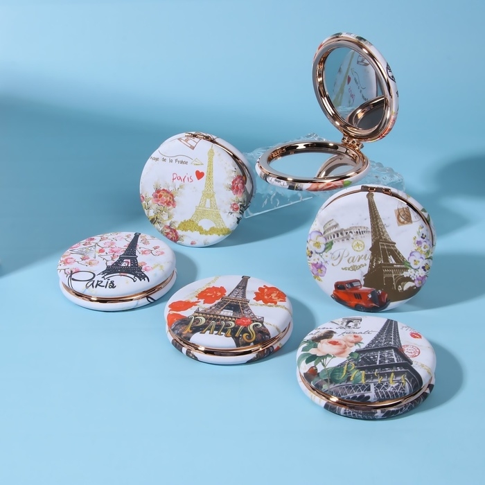 Зеркало складное «Париж», d = 7,5 см, с увеличением, искусственная кожа, рисунок МИКС