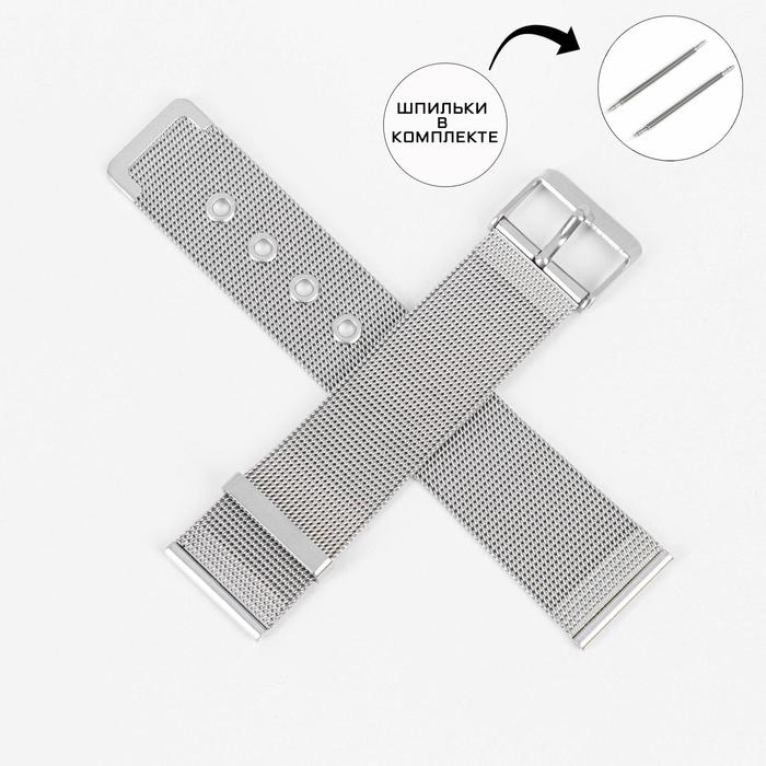Ремешок для часов "Соломон", 20 мм, нержавеющая сталь, l-18.5 см, серебристый