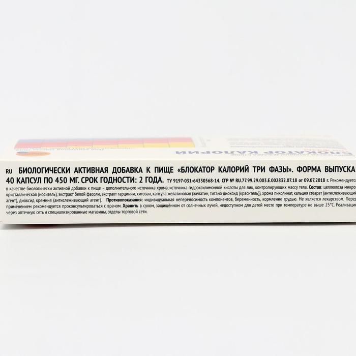 БЛОКАТОР КАЛОРИЙ три фазы - легкий способ контролировать массу тела. Нет необходимости отказывать себе в еде, препарат сам контролирует усвоение калорий.