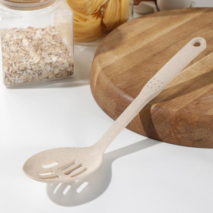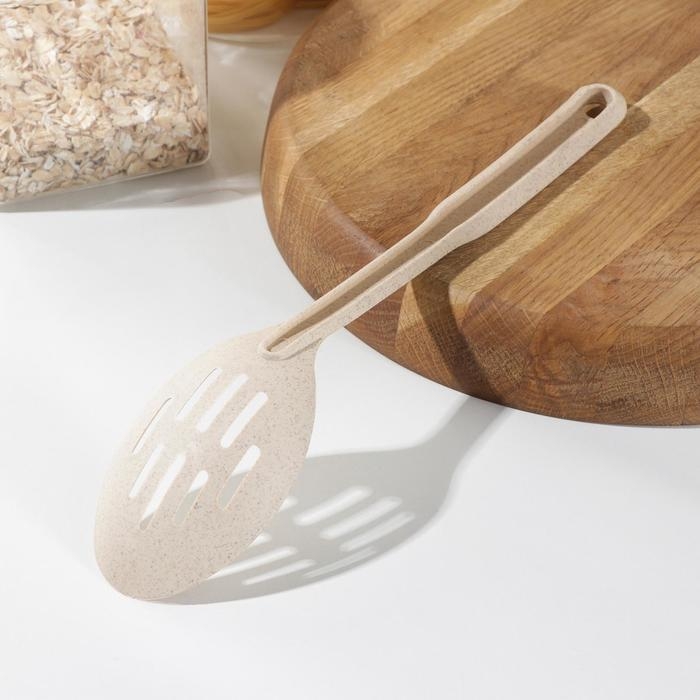 Ложка с прорезями Доляна «Беж», 28,5×6,2 см, цвет бежевый