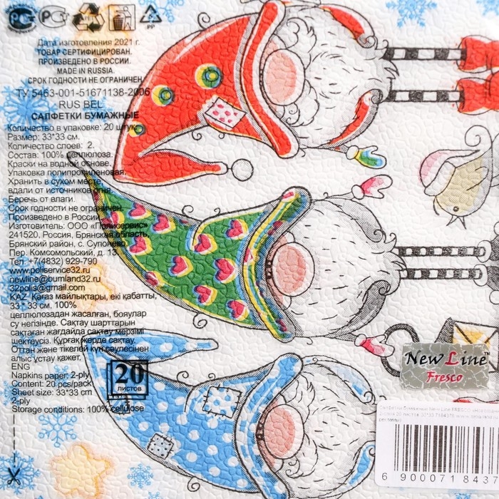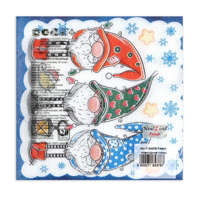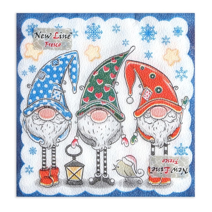 Новый год. Салфетки бумажные New Line Fresco «Новогодние гномы», 33х33 см, 2 слоя