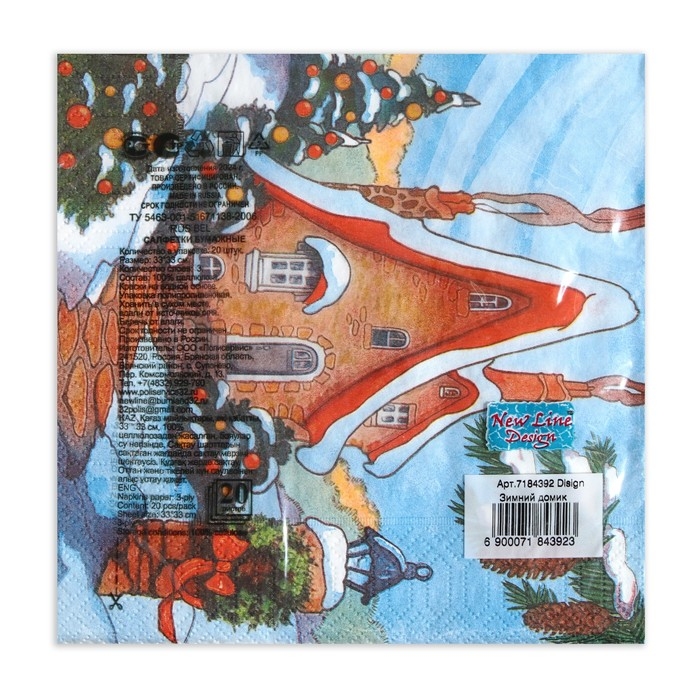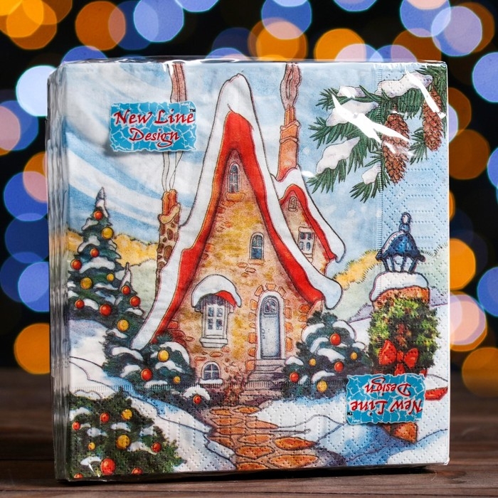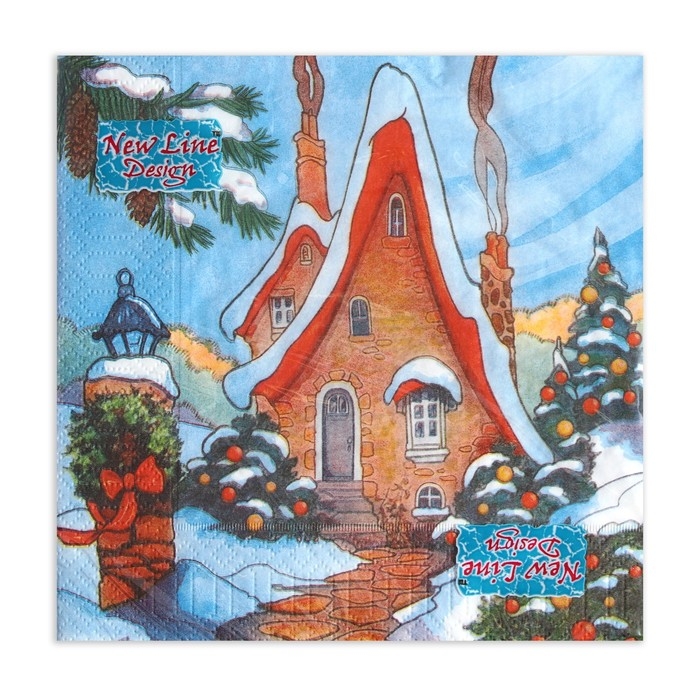 Новый год. Салфетки бумажные New Line Design «Зимний домик», 33х33 см, 3 слоя 20 листов