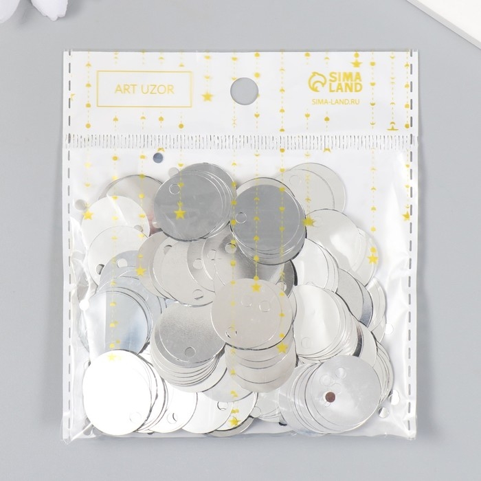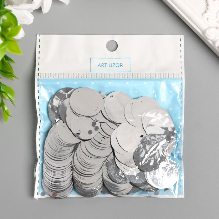 Пайетки "Круг" серебро набор 30 гр d=2 см