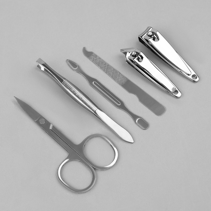 Набор маникюрный, 7 предметов, в футляре, цвет молочный