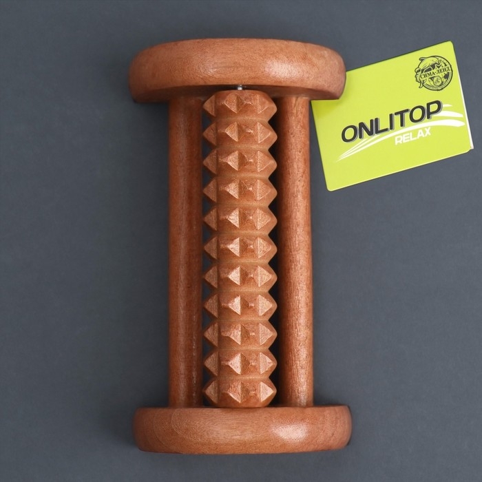 Массажёр для ног «Барабан», 1 ролик с шипами, деревянный, 14,5 × 8,2 × 5 см