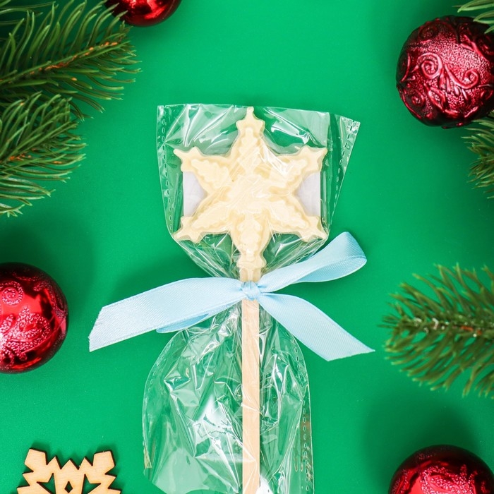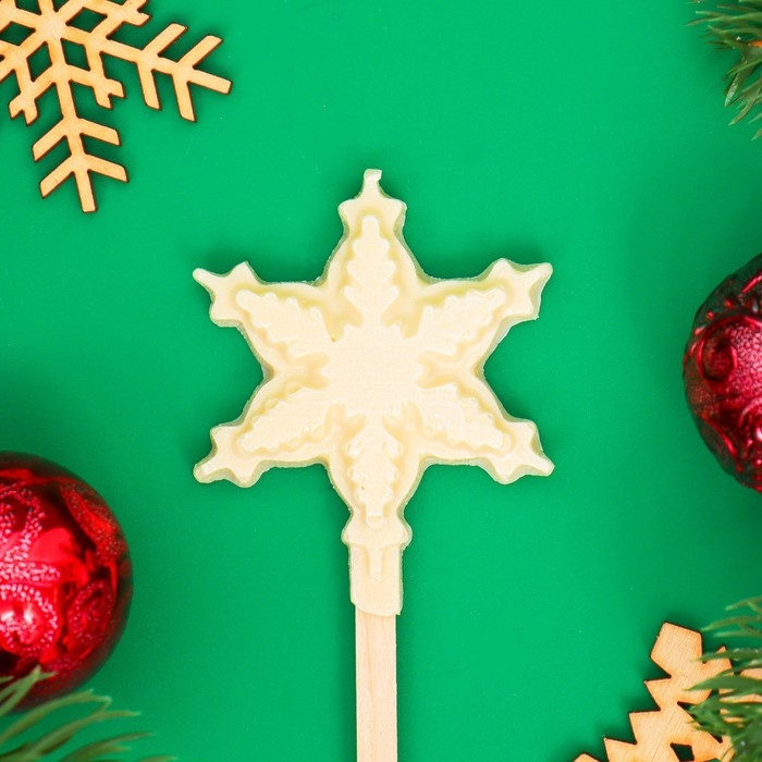 Новый год. Фигура из белого шоколада "Снежинка на палочке", 12 г ± 5 %