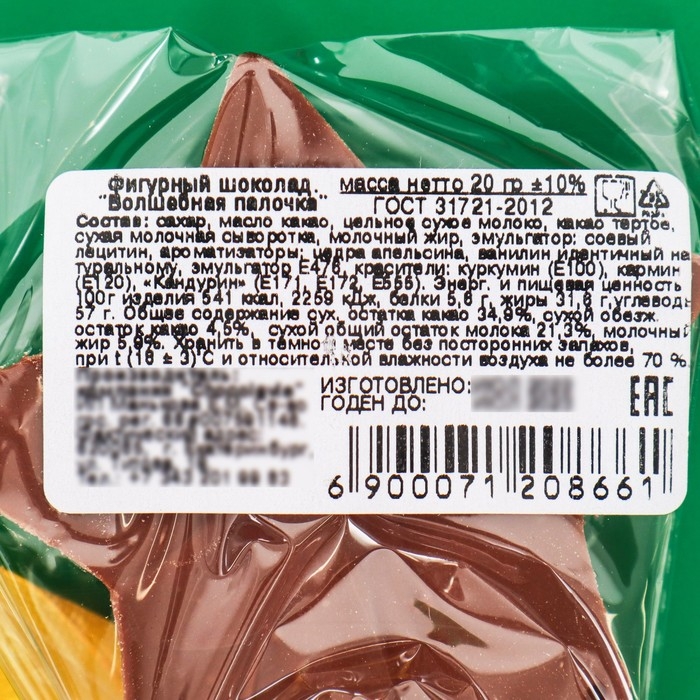 Новый год. Шоколад фигурный на палочке «Волшебная палочка», 20 г