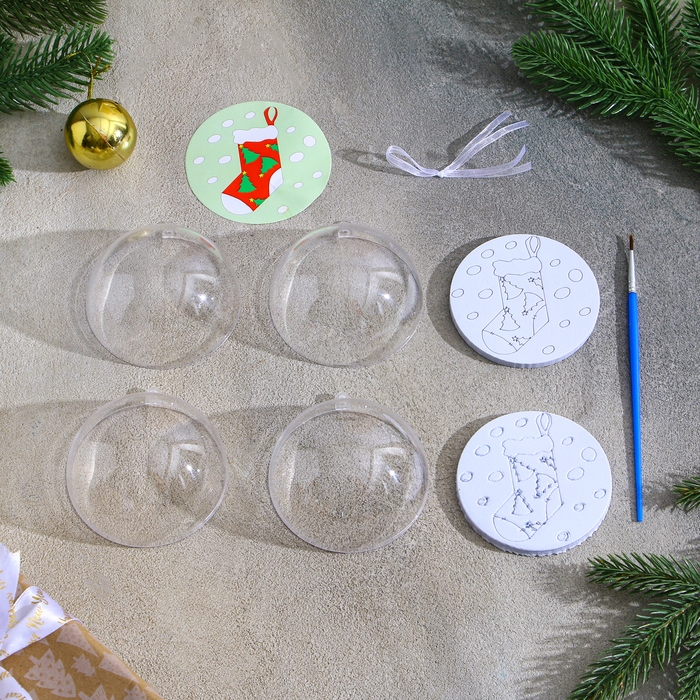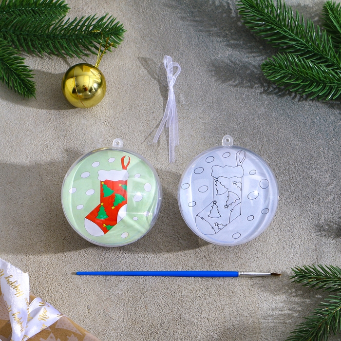 Ёлочное украшение под раскраску «Ёлочки» размер: 8 см; 2 шт., кисть