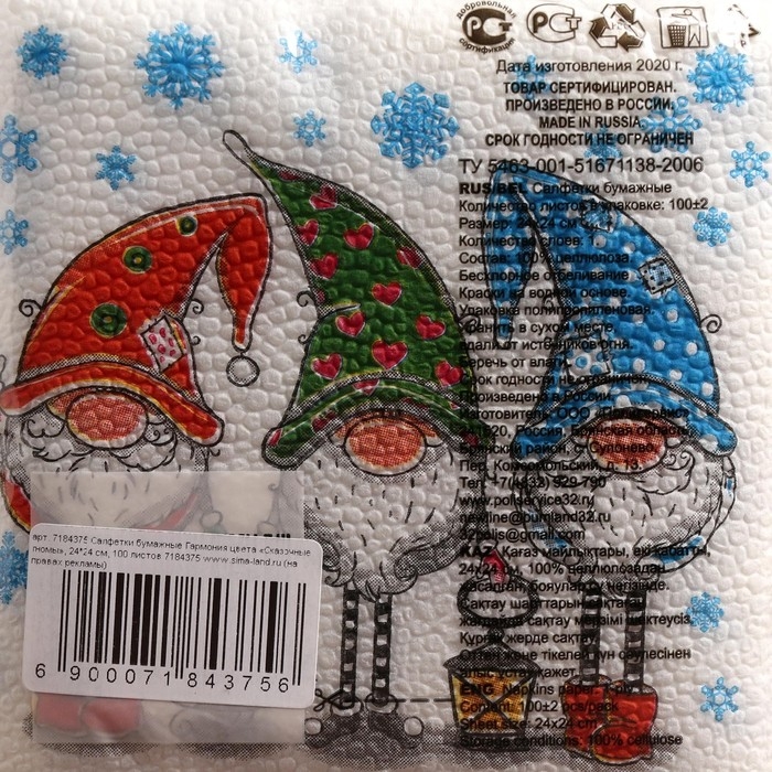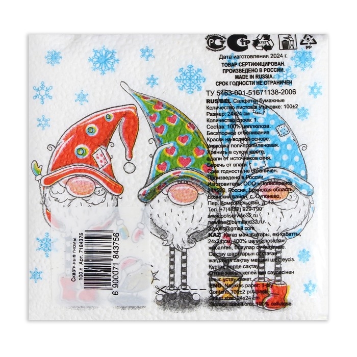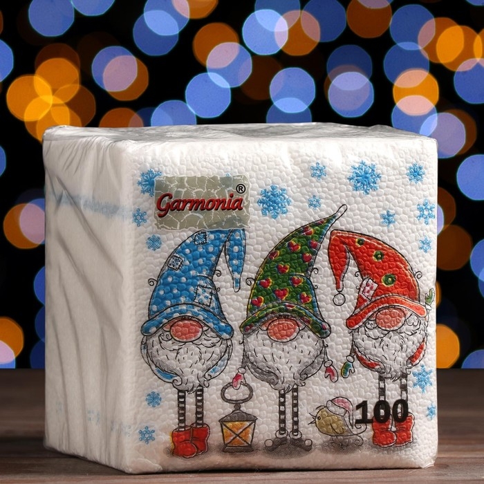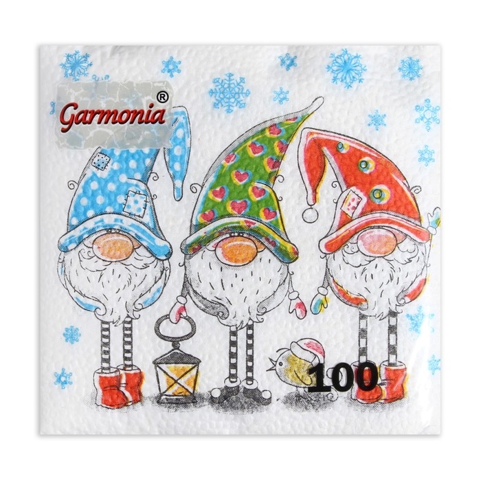 Новый год. Салфетки бумажные Гармония цвета «Сказочные гномы», 24х24 см, 100 листов