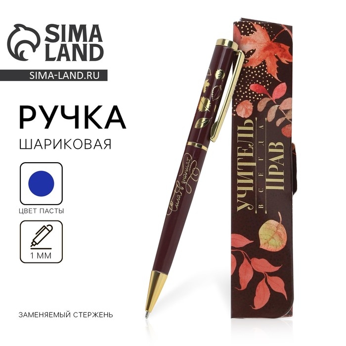 Ручка в подарочном футляре «Учителю: Учитель всегда прав!», металл, синяя паста, 1.0 мм
