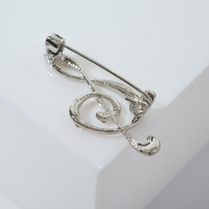 Брошь «Скрипичный ключ» сияние, цвет белый в серебре