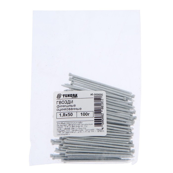 Гвозди ТУНДРА, финишные, ГОСТ 7811-7035, оцинкованные, 1,8x50 мм, 0,1 кг