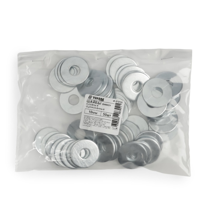 Шайба ТУНДРА, кузовная, увеличенная, DIN 9021, оцинкованная, М10, 50 шт